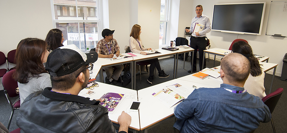 No primeiro dia de aula é aplicado um teste para saber o nível do idioma do aluno. Existem classes de A1 a C2, portanto vocês estudarão com alunos do mesmo nível.